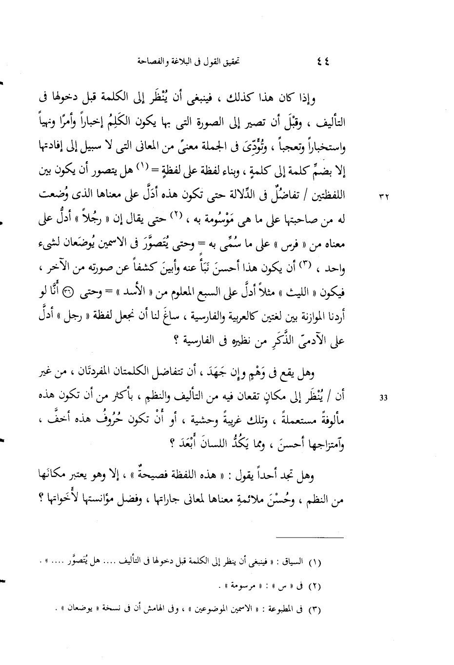 1 السياق: "فينبغي أن يُنظَر إلى الكلمةِ قبلَ دخولها في التأليف ..... هل يتصور ... ".