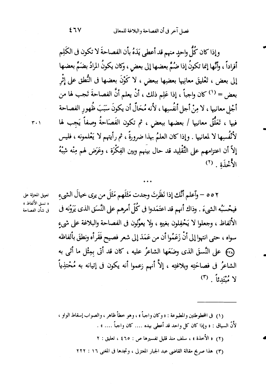 3 هذا صريح مقالة القاضي عبد الجبار المعتزلي، وتجدها في المغني 16: 222.