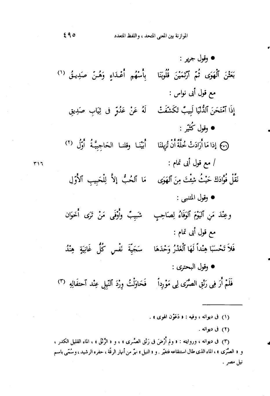 3 في ديوانه، وروايته: "ولم أرض في رنق الصرى"، و "الرنق"، الماء القليل الكدر، و "الصرى"، الماء الذي طال استنقاعه فتغير. و "النيل" نهر من أنهار الرقة، حفره الرشيد، وسمى باسم نيل مصر.