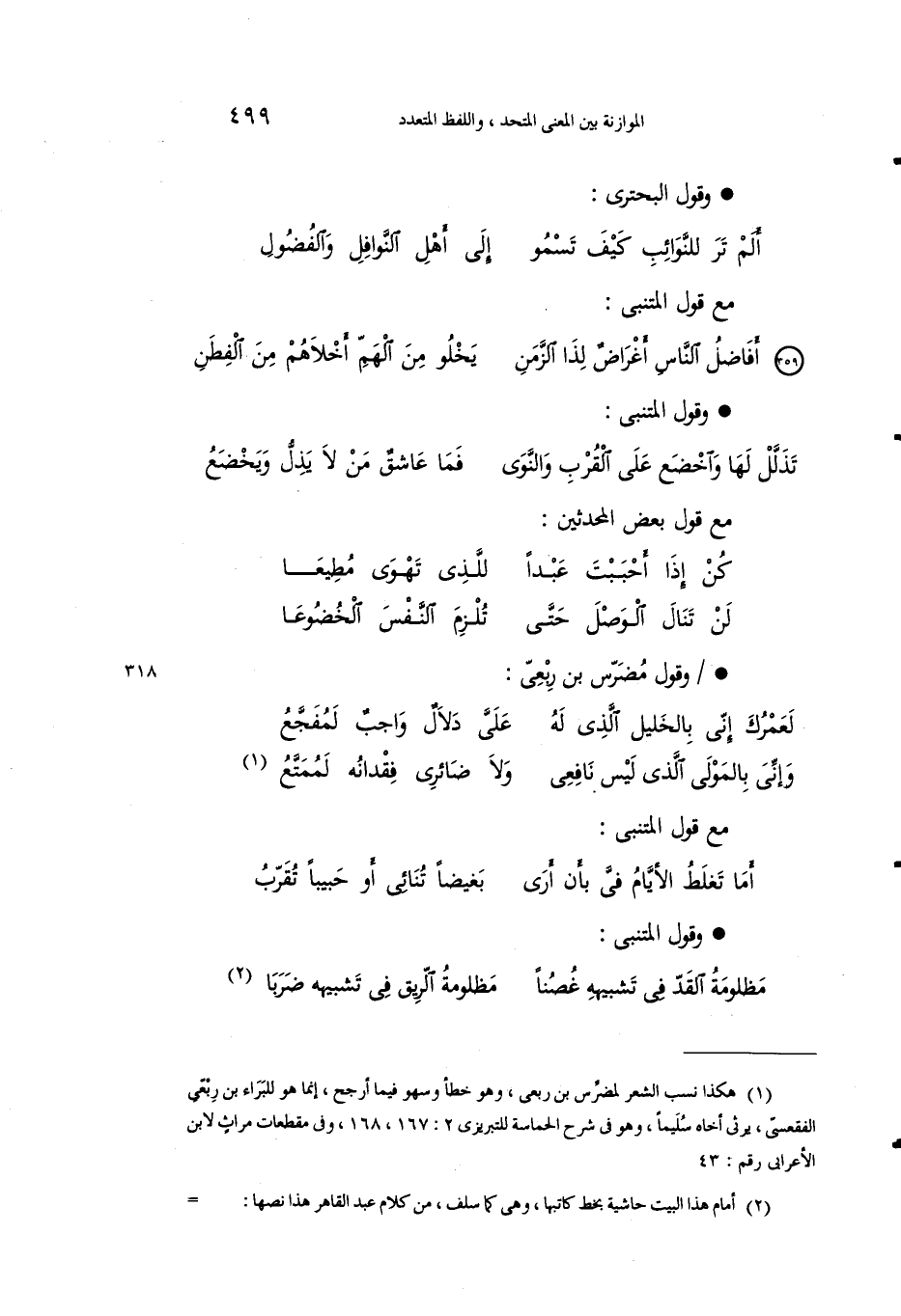 2 أمام هذا البيت حاشية بخط كاتبها، وهي كما سلف، من كلام عبد القاهر هذا نصها: