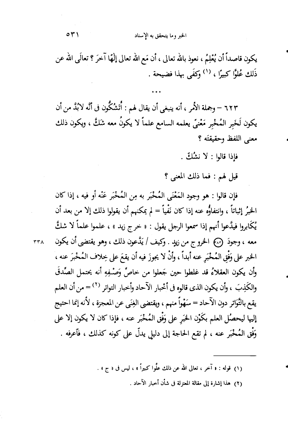 2 هذا إشارة إلى مقالة المعتزلة في شأن أخبار الآحاد.
