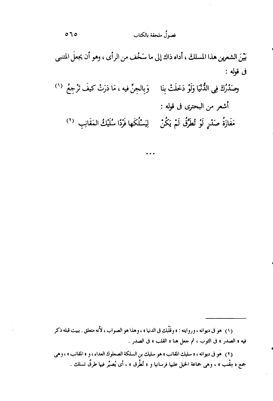 بين الشعرين هذا المسلك، أداه ذلك إلى ما سخف من الرأى، وهو أن يجعل المتنبي في قوله: