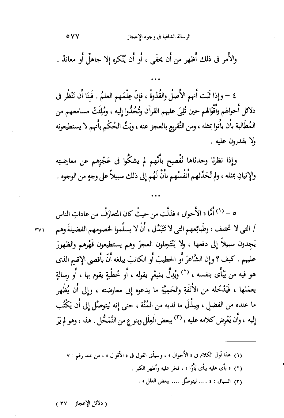 4 - وإذا ثبت أنهم الأصل والقدوة، فإن علمهم العلم. فبنا أن ننظر في دلائل أحوالهم وأقوالهم حين تلى عليهم القرآن وتحدوا إليه، وملئت مسامعهم من المطالبة بأن يأتوا بمثله، ومن التقريع بالعجز عنه، وبت الحكم بأنهم لا يستطيعونه ولا يقدرون عليه.
