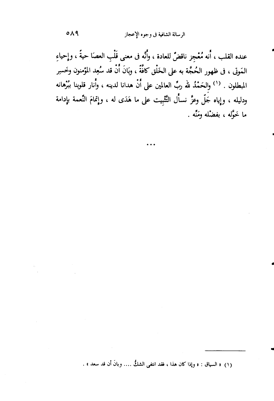 1 "السياق: "وإذا كان هذا، فقد انتفى الشك. وبان أن قد سعد".