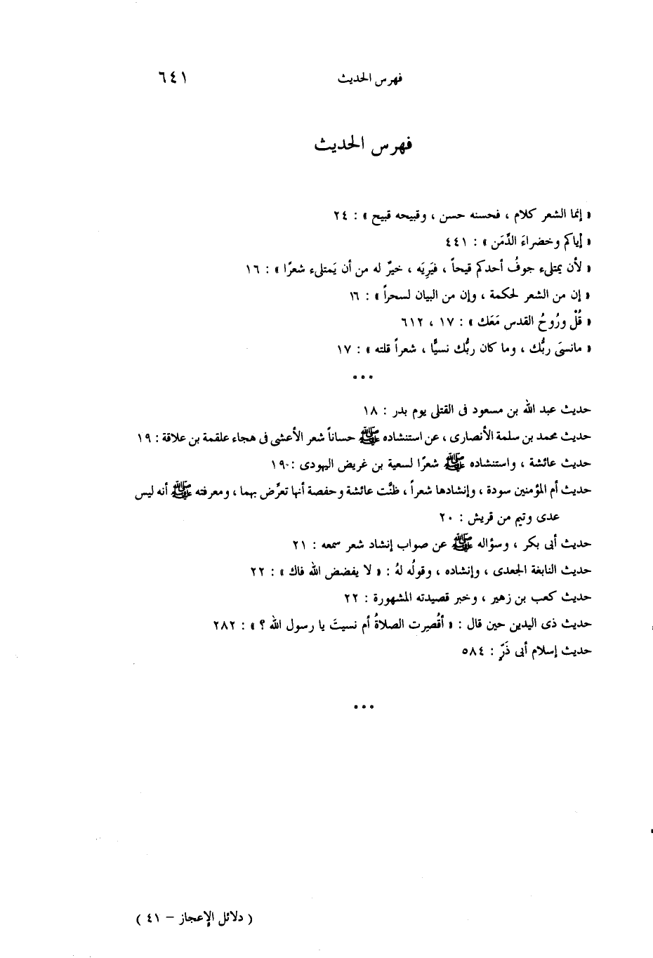 حديث أبي بكر، وسؤاله صلى الله عليه وسلم عن صواب إنشاد شعر سمعه: 21
