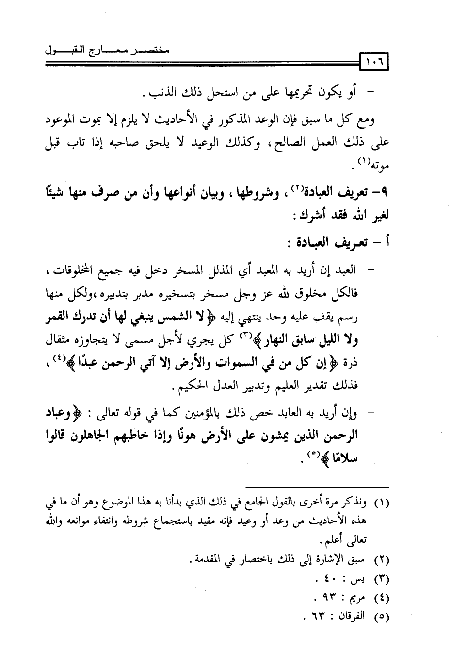 -تعريف العبادة (¬2) ، وشروطها، وبيان أَنْوَاعِهَا وَأَنَّ مَنْ صَرَفَ مِنْهَا شَيْئًا لِغَيْرِ الله فقد أشرك: