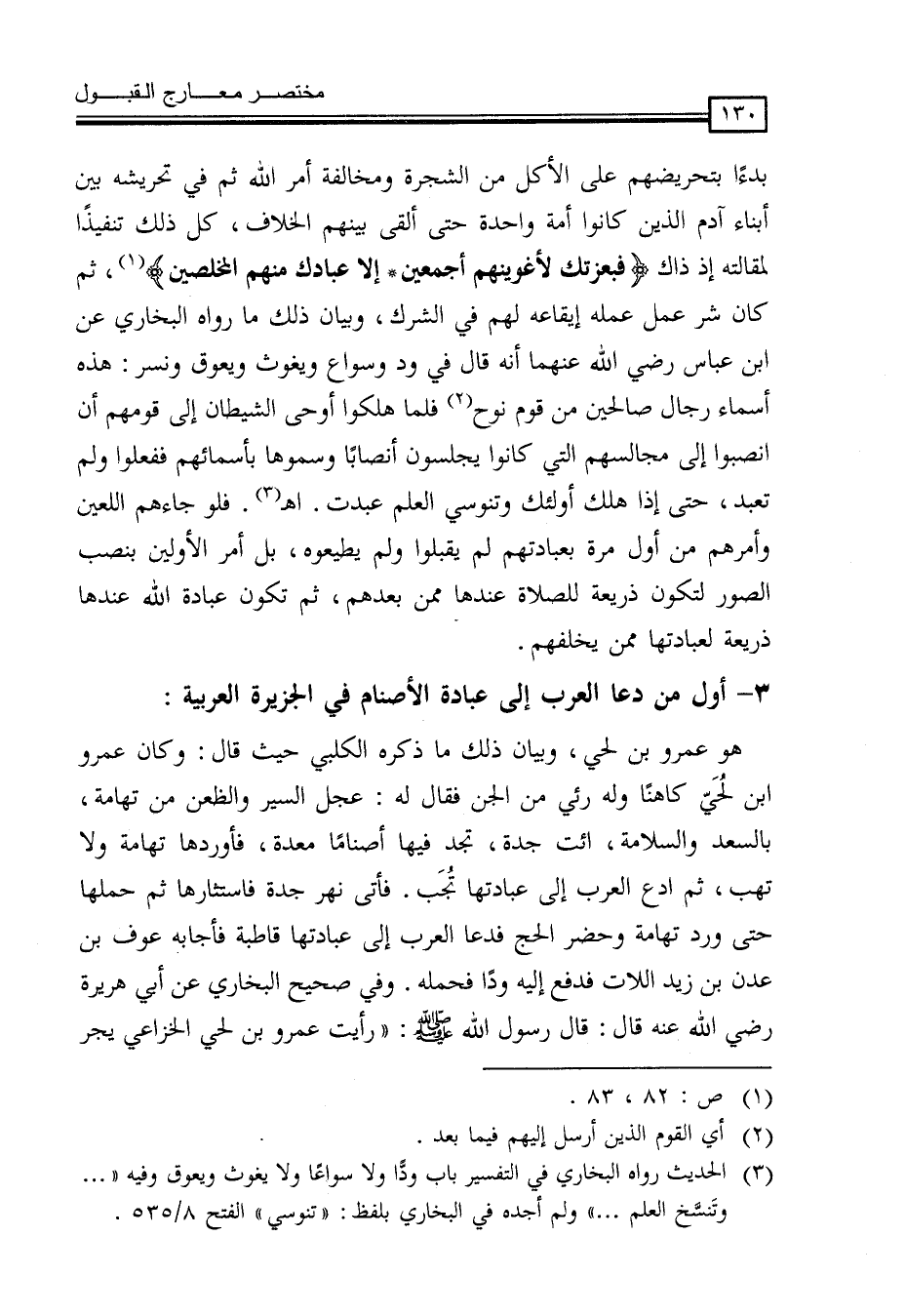 (¬3) الحديث رواه البخاري في التفسير باب وداً ولا سواعاً ولا يغوث ويعوق وفيه ( ... وتَنسَّخ العلم ... ) ولم أجده في البخاري بلفظ: (تنوسي) الفتح 8 / 535.