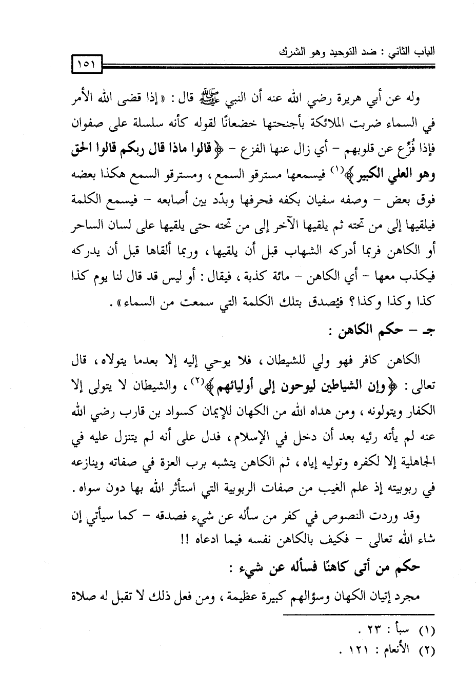 وقد وردت النُّصُوصُ فِي كُفْرِ مَنْ سَأَلَهُ عَنْ شَيْءٍ فصدقه - كما سيأتي إن شاء الله تعالى - فكيف بالكاهن نفسه فيما دعاه!!