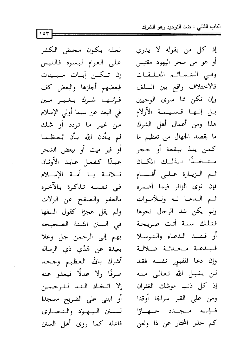 هَذَا وَمِنْ أَعْمَالِ أَهْلِ الشِّرْكِ ... مِنْ غَيْرِ مَا تَرَدُّدٍ أَوْ شَكِّ