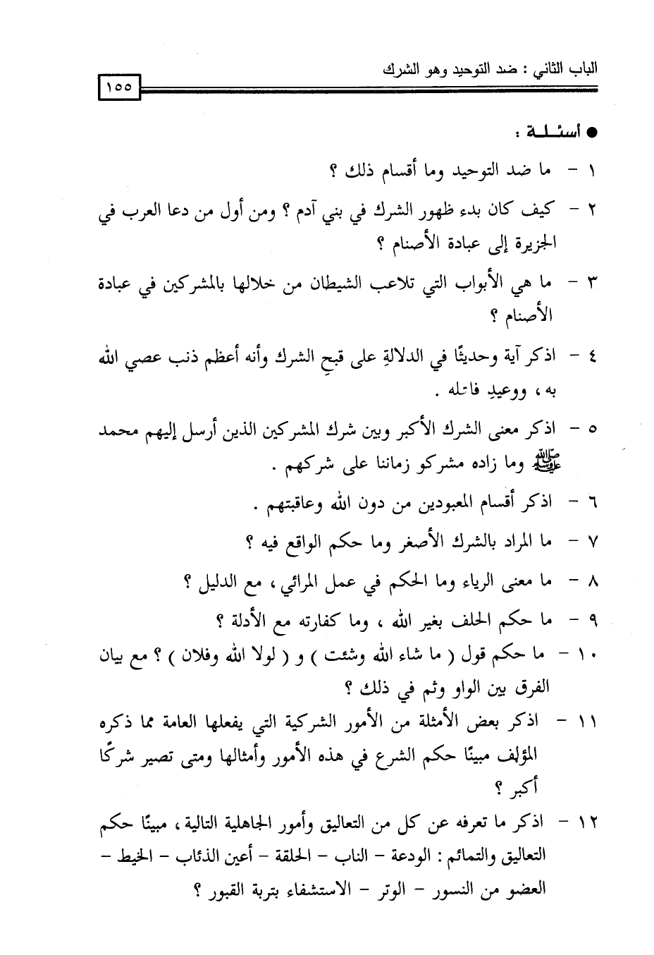 11- اذكر بعض الأمثلة من الأمور الشركية التي يفعلها العامة مما ذكره المؤلف مبينًا حكم الشرع في هذه الأمور وأمثالها ومتى تصير شركًا أكبر؟