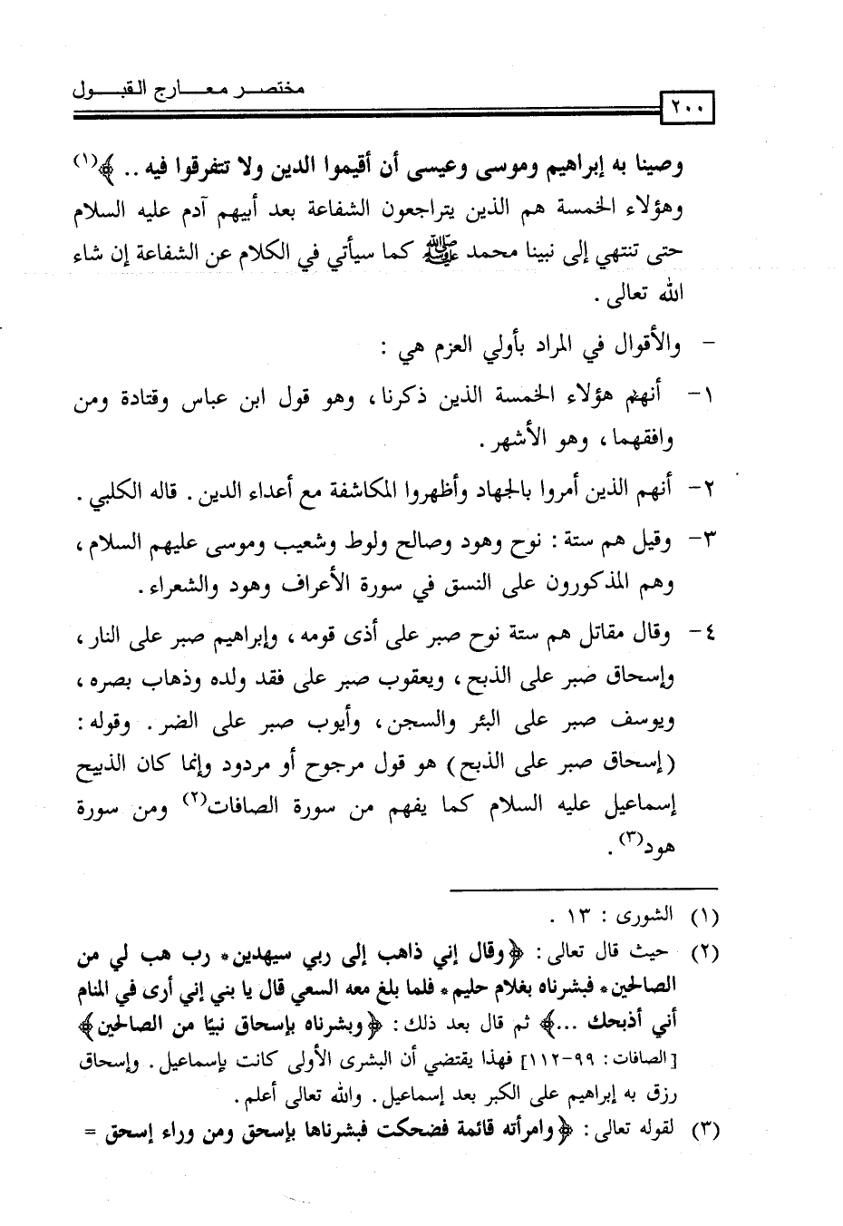 وَصَّيْنَا بِهِ إِبْرَاهِيمَ وَمُوسَى وَعِيسَى أَنْ أَقِيمُوا الدين ولا تتفرقوا فيه..} (¬1) وَهَؤُلَاءِ الْخَمْسَةُ هُمُ الَّذِينَ يَتَرَاجَعُونَ الشَّفَاعَةَ بَعْدَ أَبِيهِمْ آدَمَ عَلَيْهِ السَّلَامُ حَتَّى تَنْتَهِيَ إِلَى نبينا محمد - صلى الله عليه وسلم - كما سيأتي في الكلام عن الشفاعة إن شاء الله تعالى.