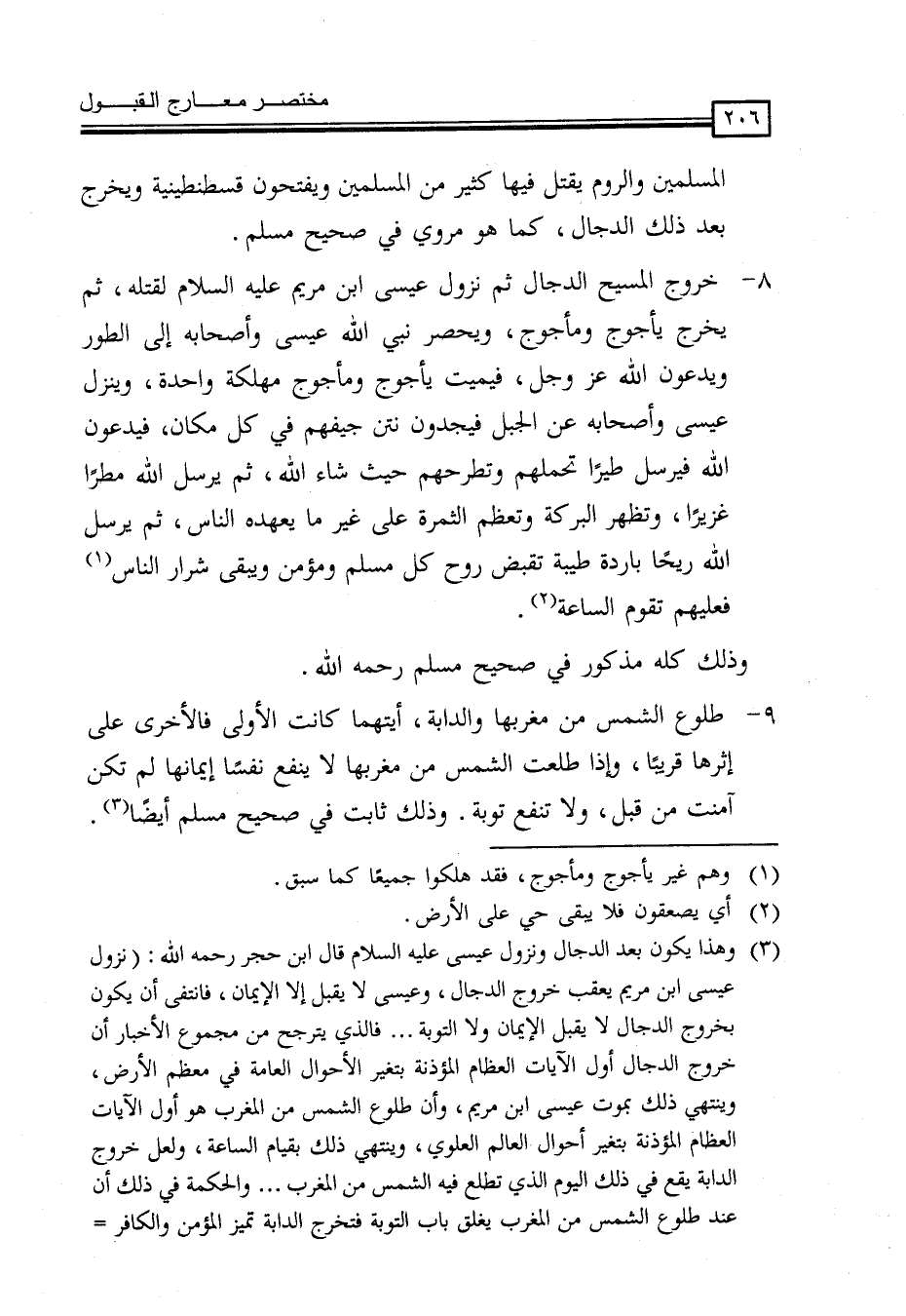9- طلوع الشمس من مغربها والدابة، أيتهما كانت الأولى فالأخرى على أثرها قريباً، وإذا طلعت الشمس من مغربها لا ينفع نفساً إيمانها لم تكن آمن من قبل، ولا تنفع توبة. وذلك ثابت في صحيح مسلم أيضاً (¬3) .