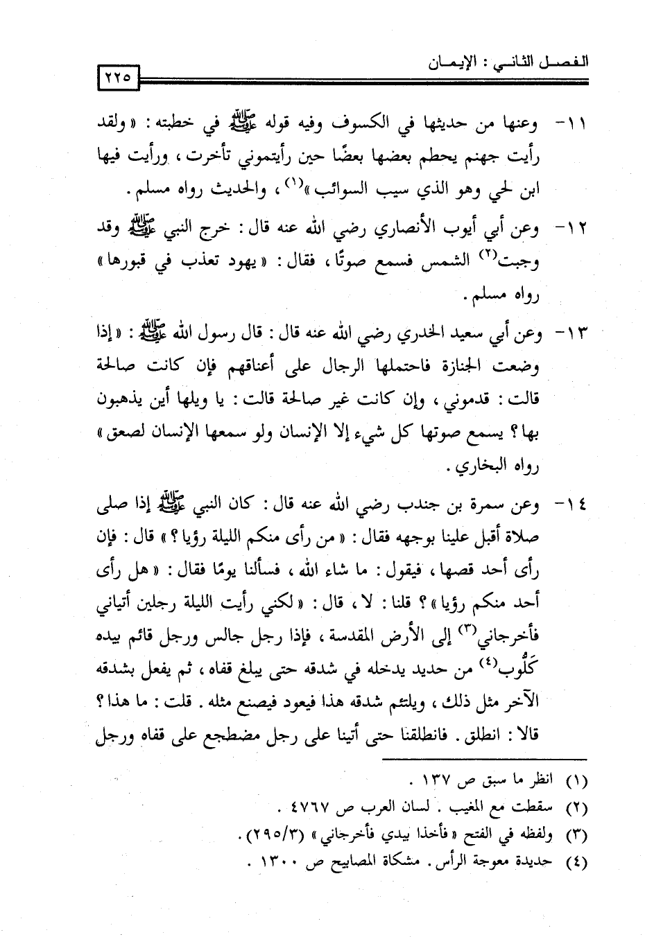 12-وعن أبي أيوب الأنصاري رضي الله عنه قَالَ: خَرَجَ النَّبِيُّ - صَلَّى اللَّهُ عَلَيْهِ وَسَلَّمَ - وَقَدْ وَجَبَتِ (¬2) الشَّمْسُ فَسَمِعَ صَوْتًا، فَقَالَ: (يَهُودُ تعذب في قبورها) رواه مسلم.