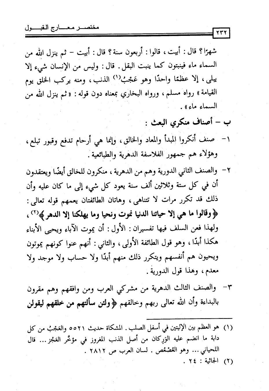 (¬1) هو العظم بين الإليتين في أسفل الصلب. المشكاة حديث 5521 والعَجْبُ من كل دابة ما انضم عليه الوَرِكان من أصل الذب المغروز في مؤخَّر العَجُز.. قال اللحياني ... وهو العُصْعُص. لسان العرب ص 2812.