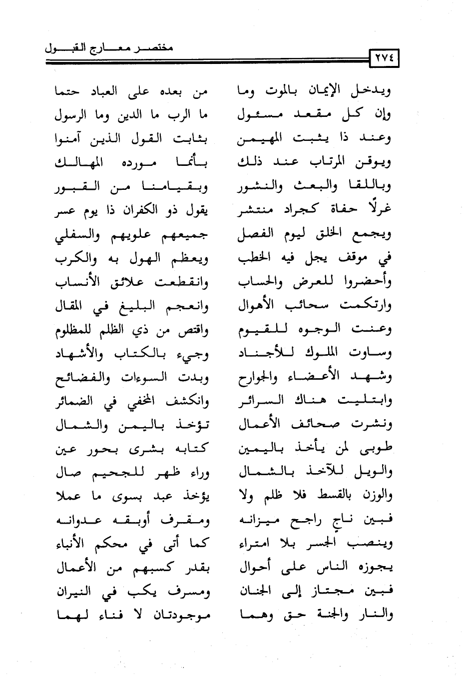 وَبِاللِّقَا وَالْبَعْثِ وَالنُّشُورِ ... وَبِقِيَامِنَا مِنَ الْقُبُورِ