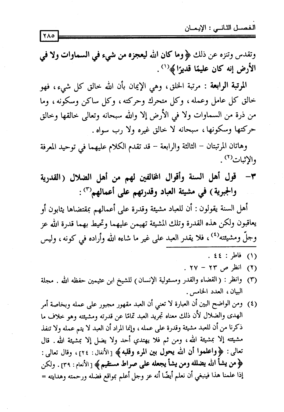 (¬3) وانظر: (القضاء والقدر ومسئولية الإنسان) للشيخ ابن عثيمين حفظه الله. مجلة البيان، العدد الخامس.