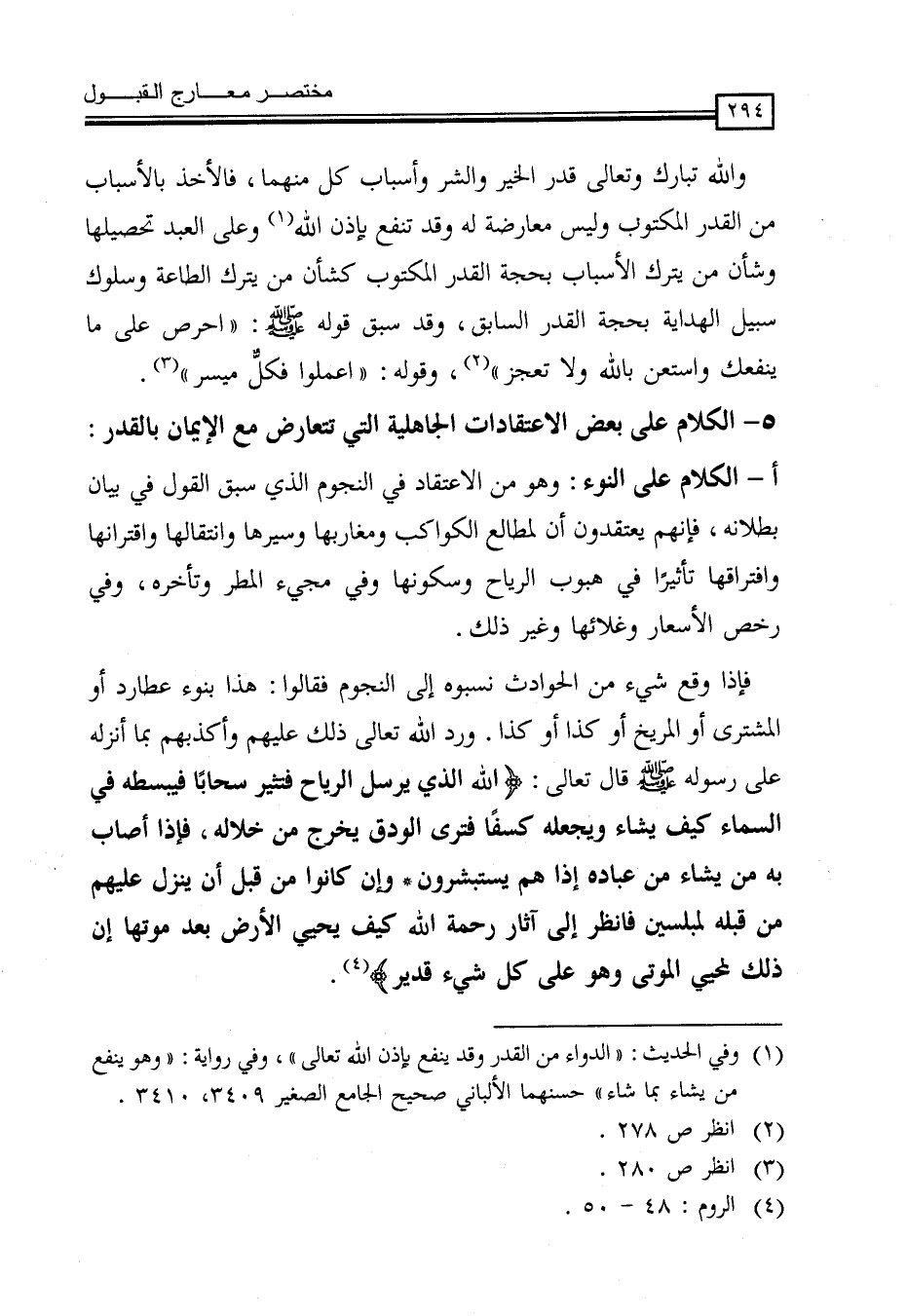 5-الكلام على بعض الاعتقادات الجاهلية التي تتعارض مع الإيمان بالقدر: