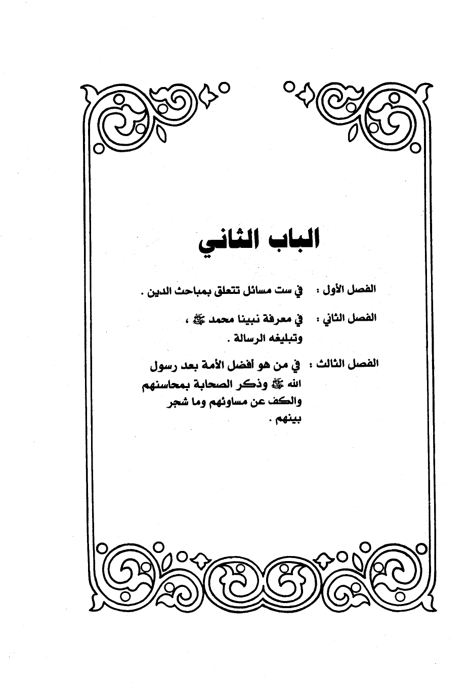 الفصل الثالث: فِي مَنْ هُوَ أَفْضَلُ الْأُمَّةِ بَعْدَ رَسُولُ اللَّهِ - صَلَّى اللَّهُ عَلَيْهِ وَسَلَّمَ - وَذَكَرَ الصَّحَابَةِ بِمَحَاسِنِهِمْ وَالْكَفِّ عَنْ مَسَاوِئِهِمْ وَمَا شَجَرَ بينهم.