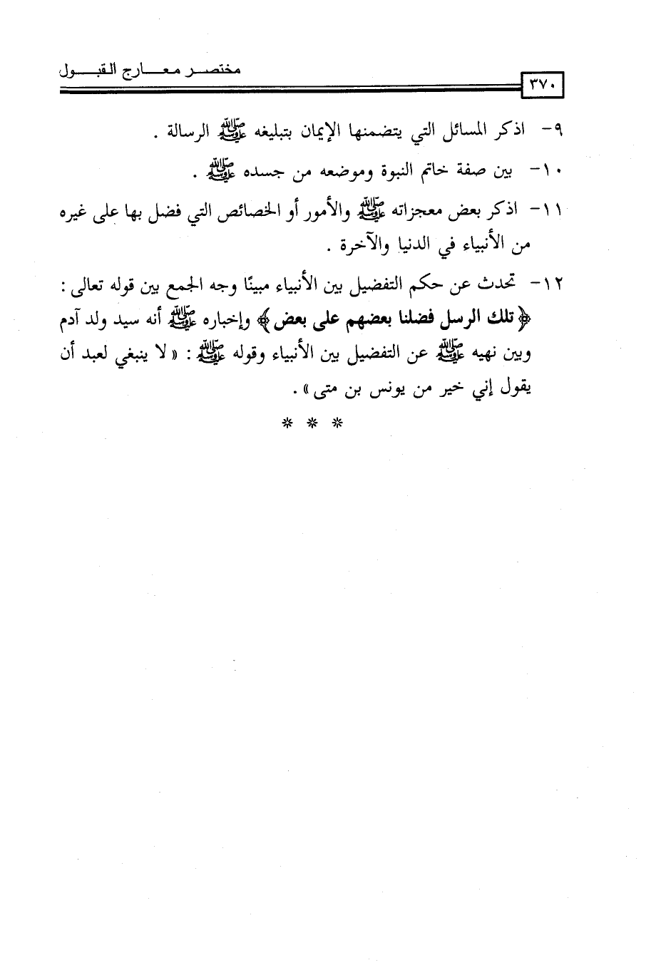 12- تحدث عن حكم التفضيل بين الأنبياء مبينًا وجه الجمع بين قوله تعالى: (تلك الرسل فضلنا بعضهم على بعض) وإخباره - صلى الله عليه وسلم - أنه سيد ولد آدم ويين نهيه - صلى الله عليه وسلم - عن التفضيل بين الأنبياء وقوله - صَلَّى اللَّهُ عَلَيْهِ وَسَلَّمَ -: "لَا يَنْبَغِي لِعَبْدٍ أَنْ يَقُولَ إِنِّي خَيْرٌ مِنْ يُونُسَ بْنِ متى".