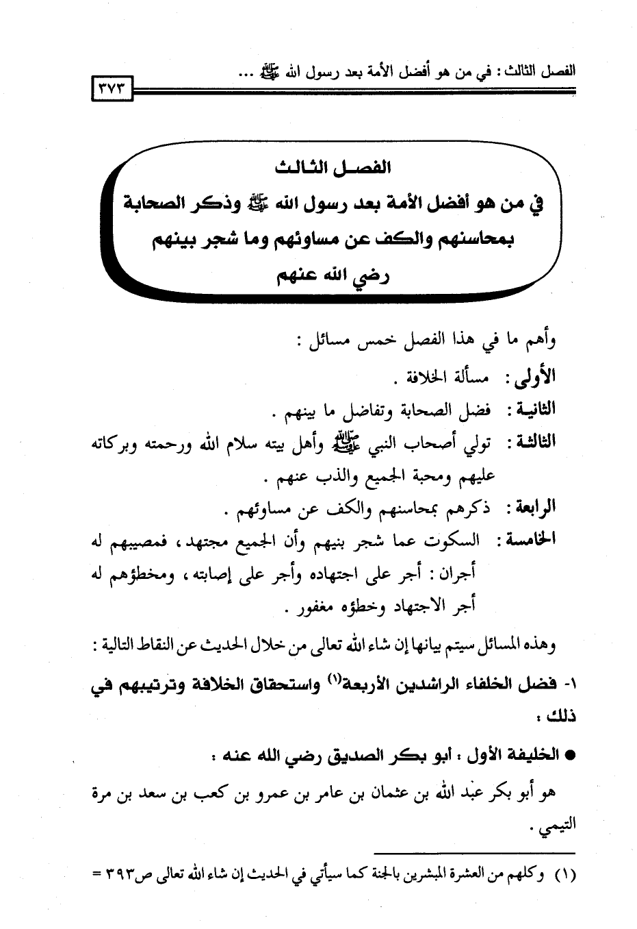 -فضل الخلفاء الراشدين الأربعة (¬1) واستحقاق الخلافة وترتيبهم في ذلك: