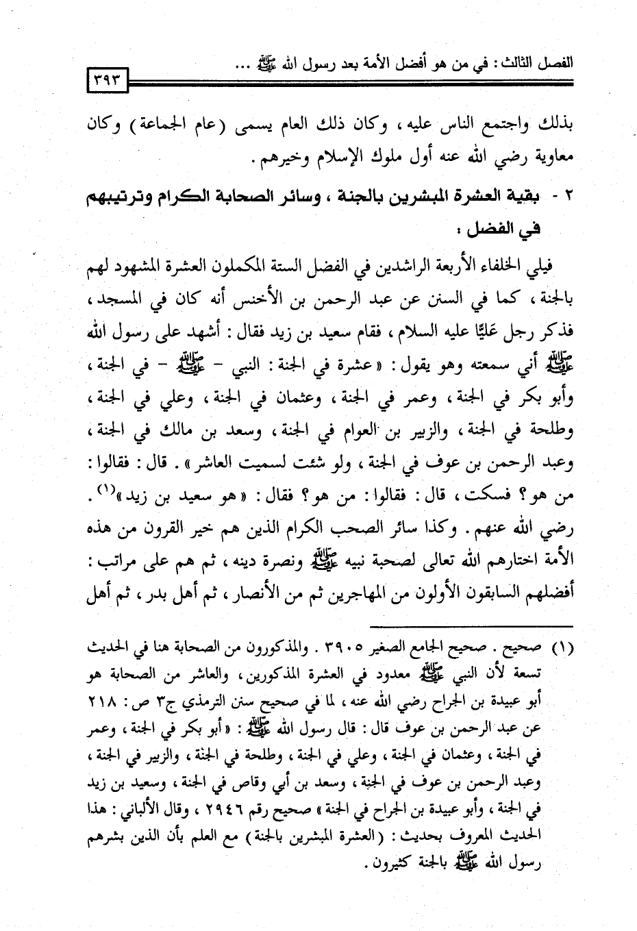 2-بقية العشرة المبشرين بالجنة، وسائر الصحابة الكرام وترتيبهم في الفضل: