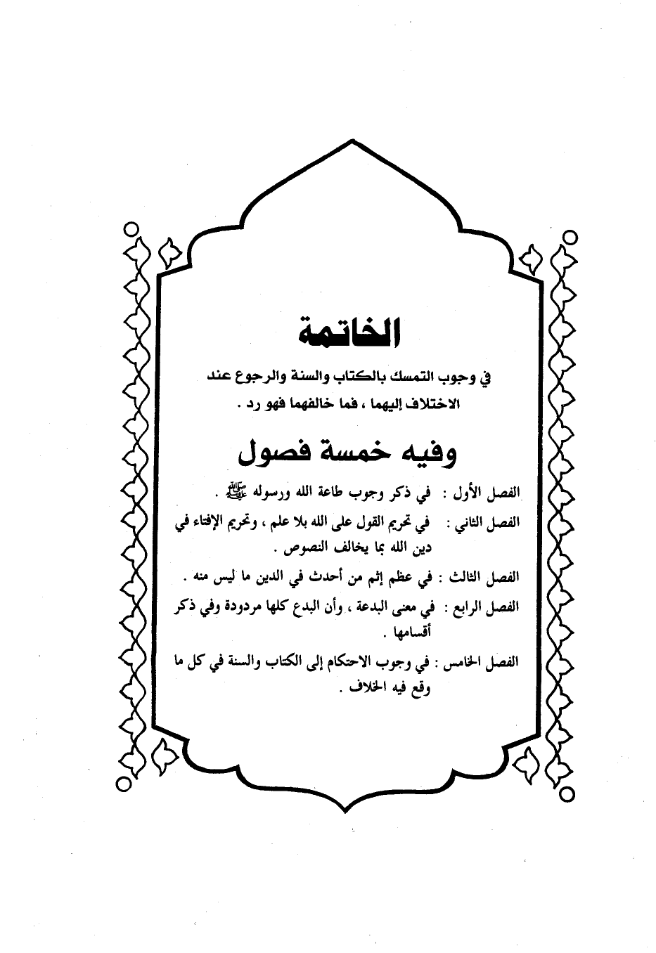 الفصل الخامس: في وجوب الاحتكام إلى الكتاب والسنة في كل ما وقع فيه الخلاف.