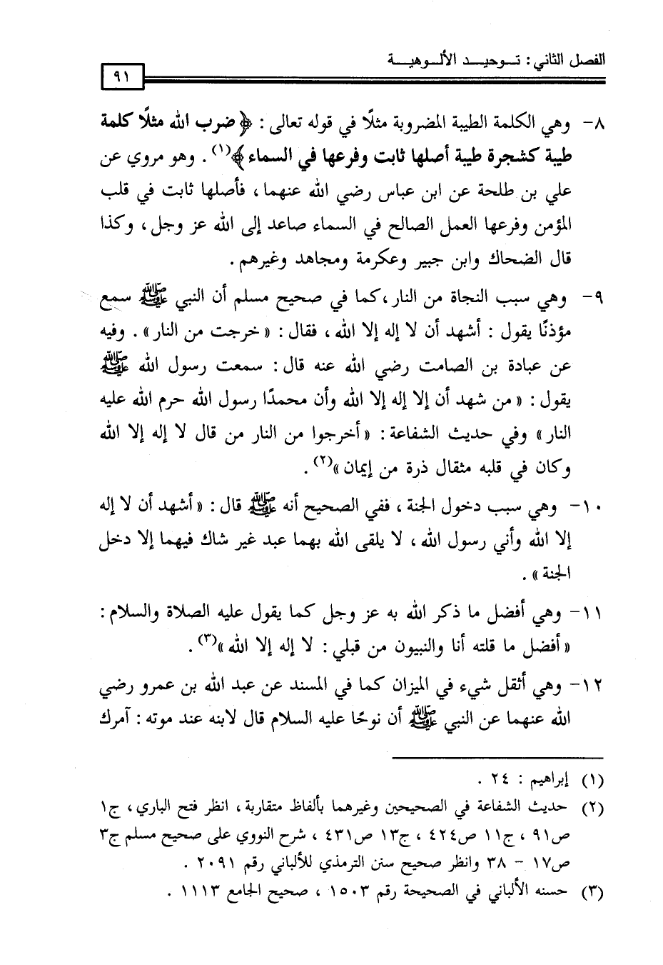 11-وهي أفضل ما ذكر الله به عز وجل كما يقول عليه الصلاة والسلام: (أفضل ما قلته أنا والنبيون من قبلي: لا إله إلا الله) (¬3) .