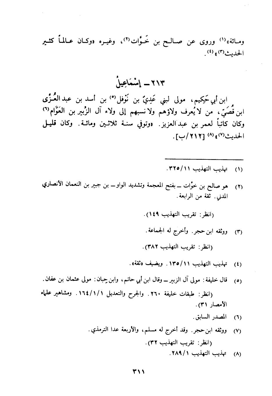 ابن أَبِي حَكِيمٍ، مَوْلًى لِبَنِي عَدِيِّ بْنِ نَوْفَلِ5 بْنِ أَسَدِ بْنِ عَبْدِ العزَّى بْنِ قُصَيٍّ، مَنْ لَا يُعرف وَلَاؤُهُمْ وَلَا نَسَبُهُمْ إِلَى وَلَاءِ آلِ الزُّبَيْرِ بْنِ العوَّام6 وَكَانَ كَاتِبًا لِعُمَرَ بْنِ عَبْدِ الْعَزِيزِ. (وَتُوُفِّيَ سَنَةَ ثَلَاثِينَ ومائة. وكان قليل الحديث7) 8 [212/ب] .