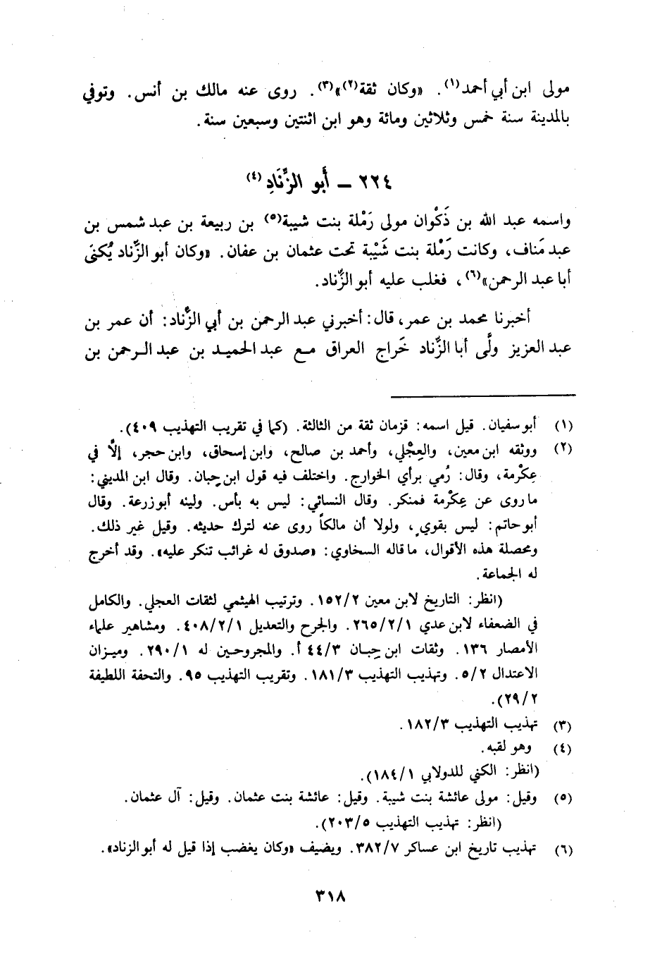 6 تهذيب تاريخ ابن عساكر 7/382. ويضيف (وكان يغضب إذا قيل له أبو الزناد) .