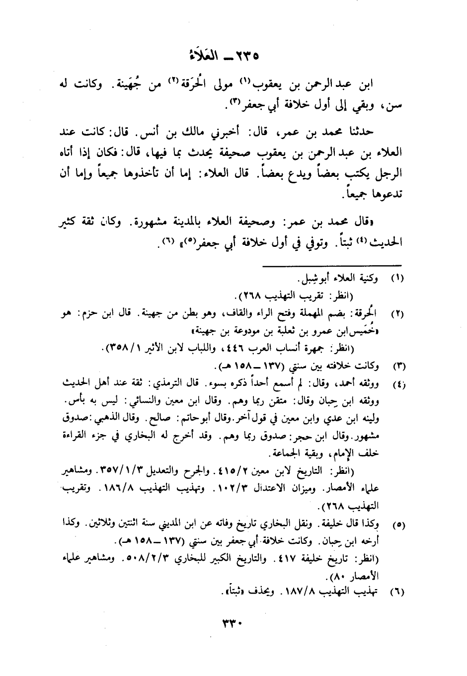 1 وكنية العلاء أبو شِبل. (انظر: تقريب التهذيب 268) .