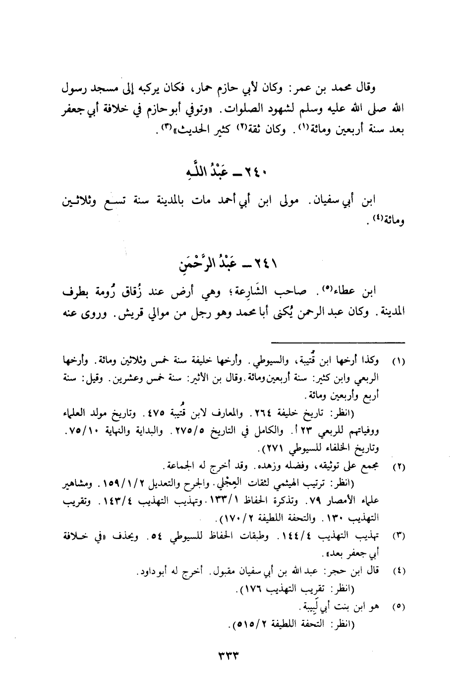 3 تهذيب التهذيب 4/144. وطبقات الحفاظ للسيوطي 54. ويحذف (في خلافة أبي جعفر بعد) .