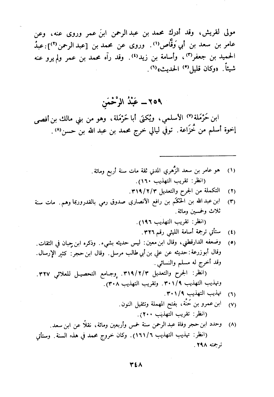 8 وحدد ابن حجر وفاة عبد الرحمن سنة خمس وأربعين ومائة، نقلاً عن ابن سعد. (انظر: تهذيب التهذيب 6/161) . وكان خروج محمد في هذه السنة. وستأتي ترجمته 298.