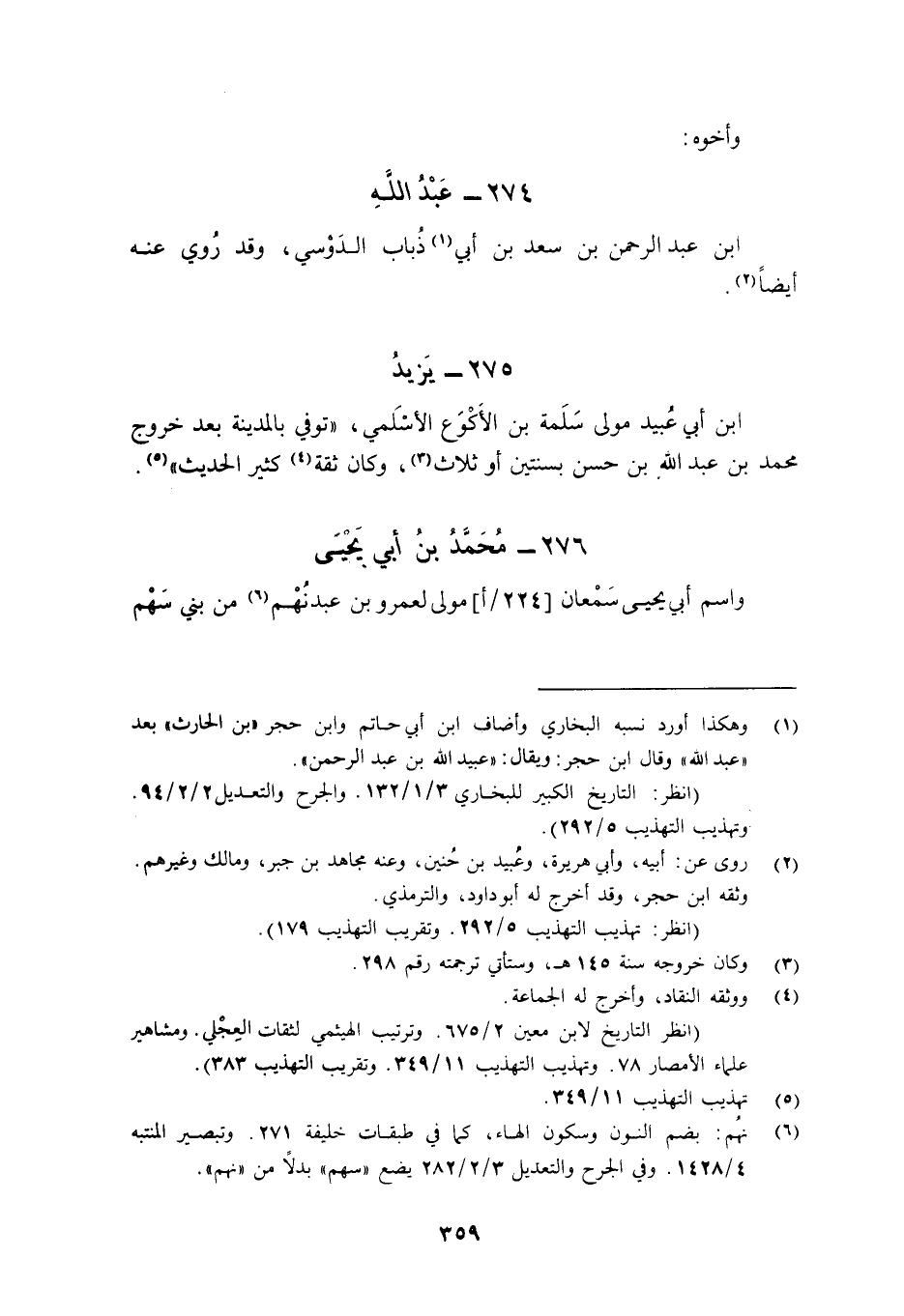 واسم أبي يحيى سَمْعَان [224/أ] مَوْلًى لِعَمْرِو بْنِ عَبْدِ نُهْم6 مِنْ بَنِي سَهْم