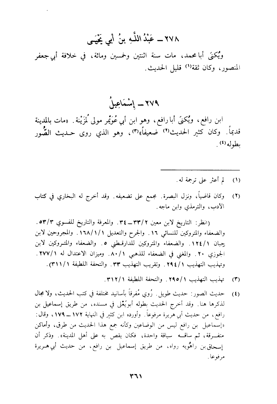 ابن رَافِعٍ، وَيُكَنَّى أَبَا رَافِعٍ، وَهُوَ ابْنُ أَبِي عُوَيمر مَوْلًى لُمزَيْنة. مَاتَ بِالْمَدِينَةَ قَدِيمًا. وَكَانَ كَثِيرَ الْحَدِيثِ2 ضَعِيفًا3، وَهُوَ الَّذِي رَوَى حَدِيثَ الصور بطوله4.