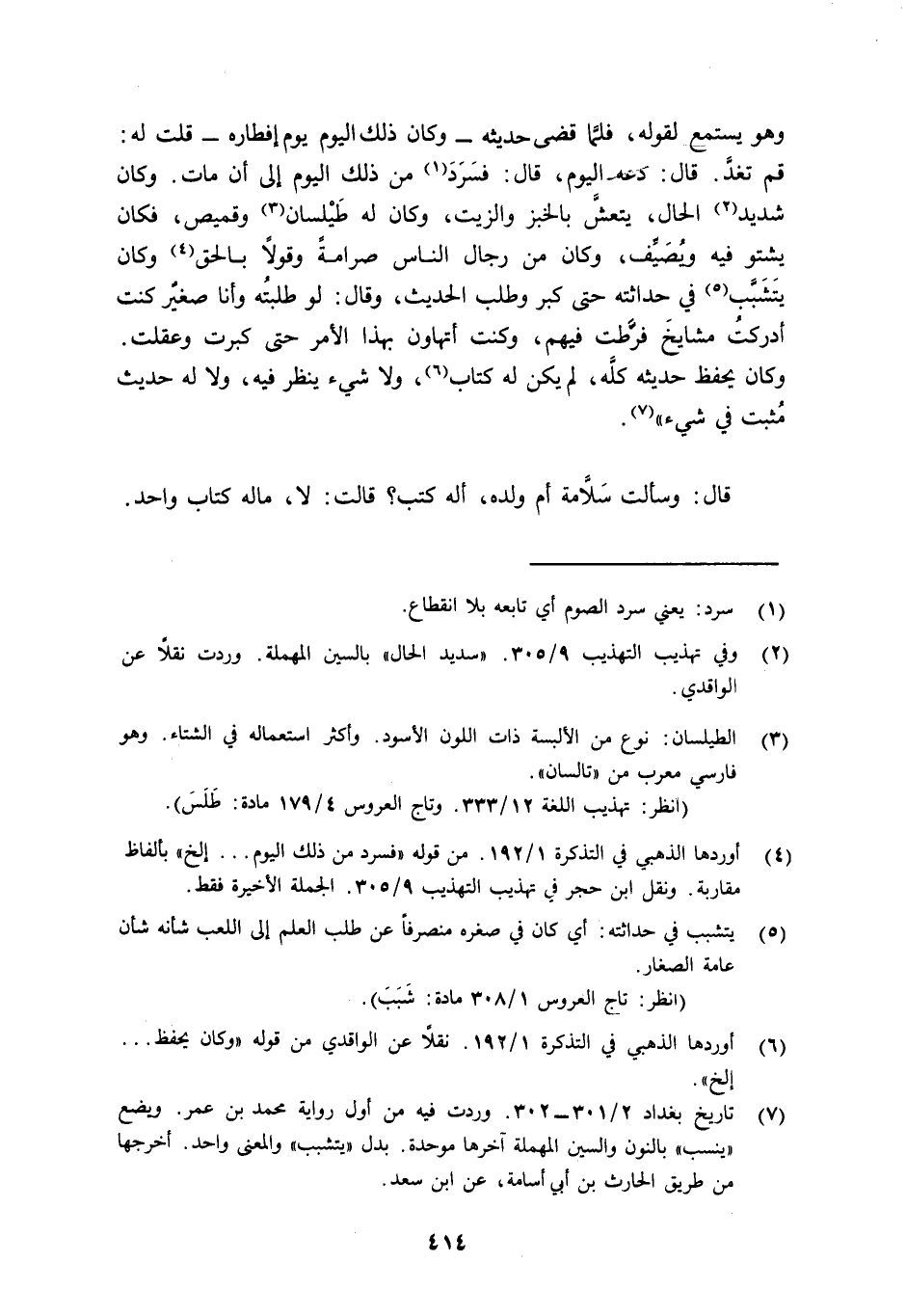 4 أوردها الذهبي في التذكرة 1/192. من قوله (فسرد من ذلك اليوم....الخ) . بألفاظ مقاربة. ونقل ابن حجر في تهذيب التهذيب 9/305. الجملة الأخيرة فقط.