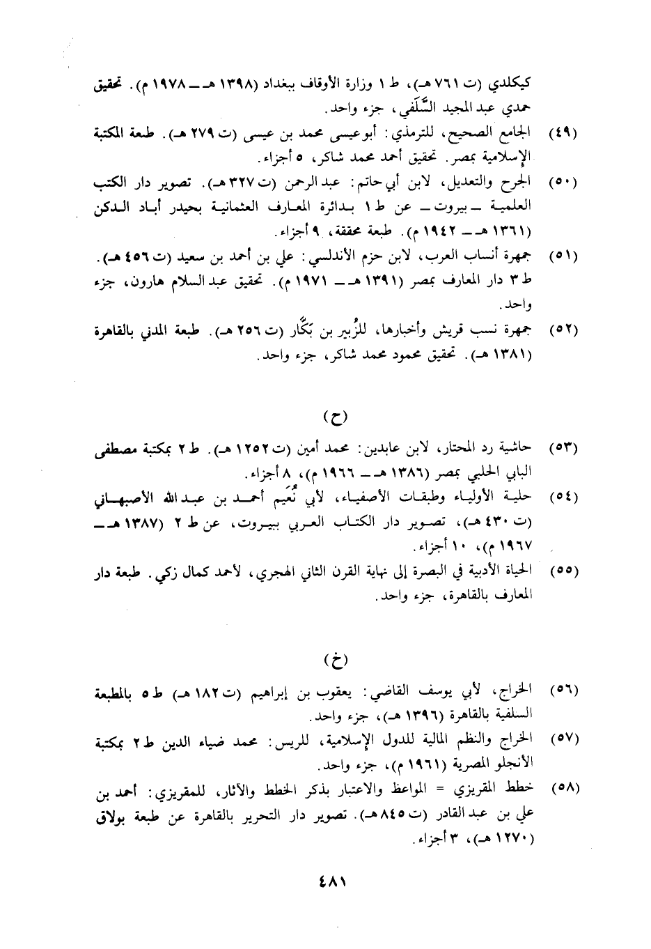 الخراج والنظم المالية للدول الإسلامية، للريس: محمد ضياء الدين ط 2 بمكتبة الأنجلو المصرية (1961م) ، جزء واحد.