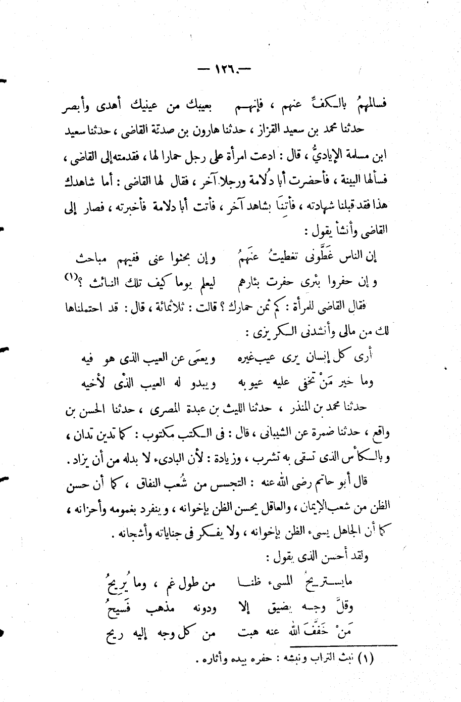 فقال القاضي للمرأة كم ثمن حمارك قالت ثلاثمائة قال قد احتملناها لك من مالي وأنشدني الكريزي ... أرى كل إنسان يرى عيب غيره ... ويعمى عَن العيب الذي هو فيه