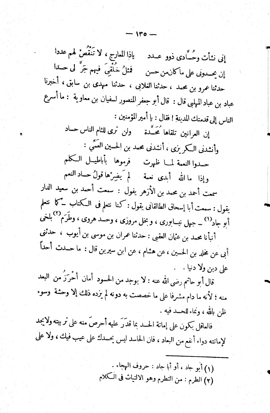 .. إني نشأت وحسادي ذوو عدد ... ياذا المعارج لا تنقص لهم عددا