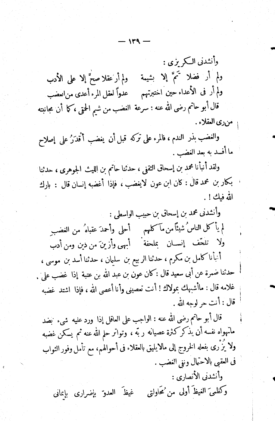 وأنشدني مُحَمَّد بْن إِسْحَاق بْن حبيب الواسطي ... لم يأكل الناس شيئا من مآكلهم ... أحلى وأحمد عقباه من الغضب