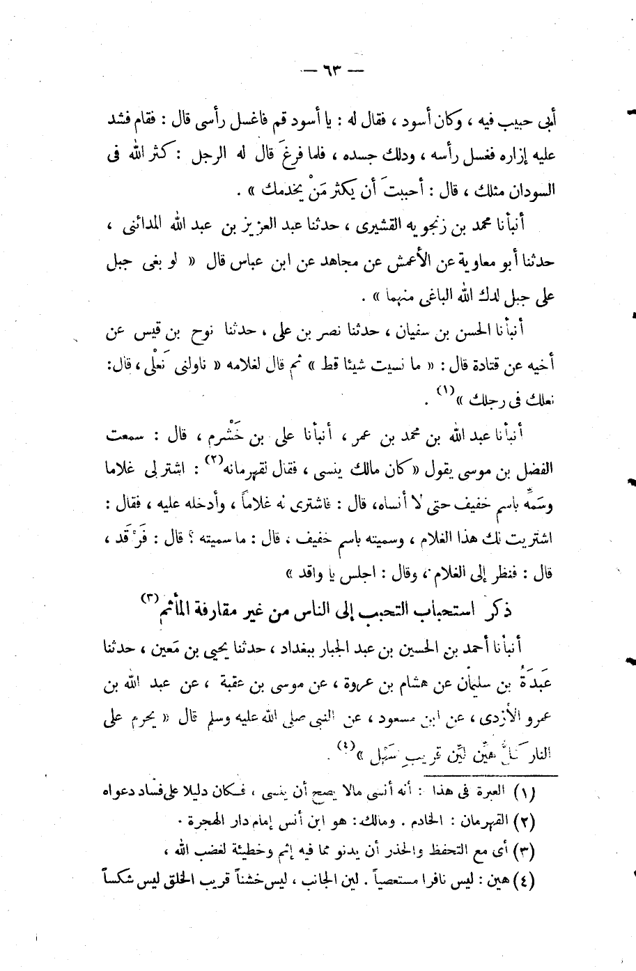 أَبِي حبيب فيه وكان أسود فقال له يا أسود قم فاغسل رأسي قال فقام فشد عَلَيْهِ إزاره فغسل رأسه ودلك جسده فلما فرغ قَالَ له الرجل كثر اللَّه في السودان مثلك قَالَ أحببت أن يكثر من يخدمك