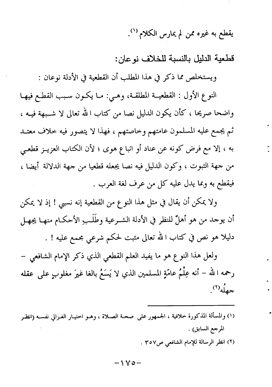قطعية الدليل بالنسبة للخلاف نوعان: