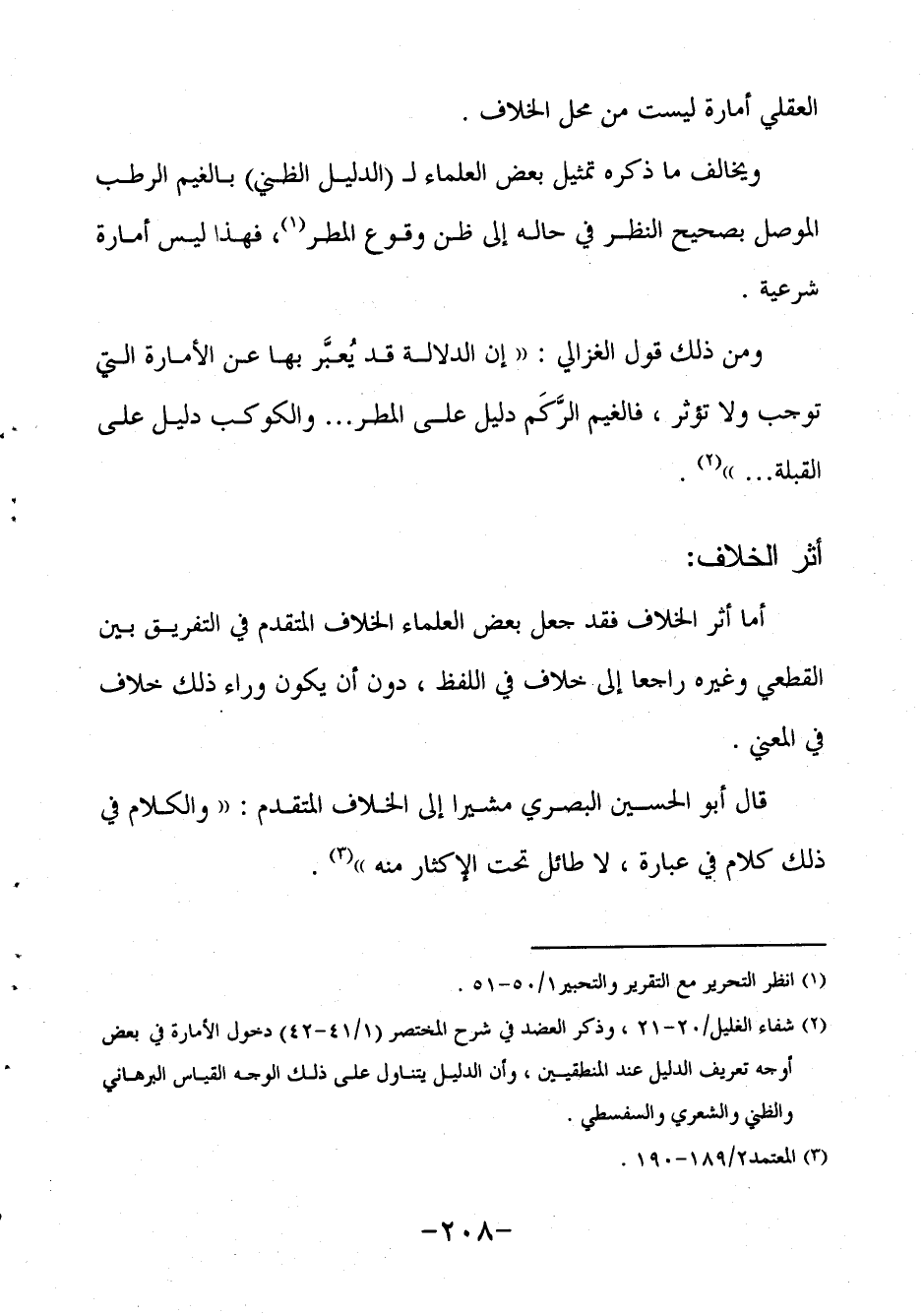 ويخالف ما ذكره تمثيل بعض العلماء لـ (الدليل الظني) بالغيم الرطب الموصل بصحيح النظر في حاله إلى ظن وقوع المطر،1 فالظاهر أن ذلك ليس أمارة شرعية.