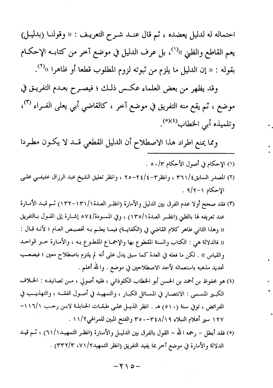 4 هو محفوظ بن أحمد بن الحسن أبو الخطاب الكلوذاني، فقيه أصولي، من تصانيفه: الخلاف الكبير المسمى: الانتصار في المسائل الكبار، والتمهيد في أصول الفقه، والتهذيب في الفرائض، توفي سنة (510) هـ. انظر الذيل على طبقات الحنابلة لابن رجب 1/116-127 سير أعلام النبلاء 19/348-350 والفتح المبين للمراغي2/11.