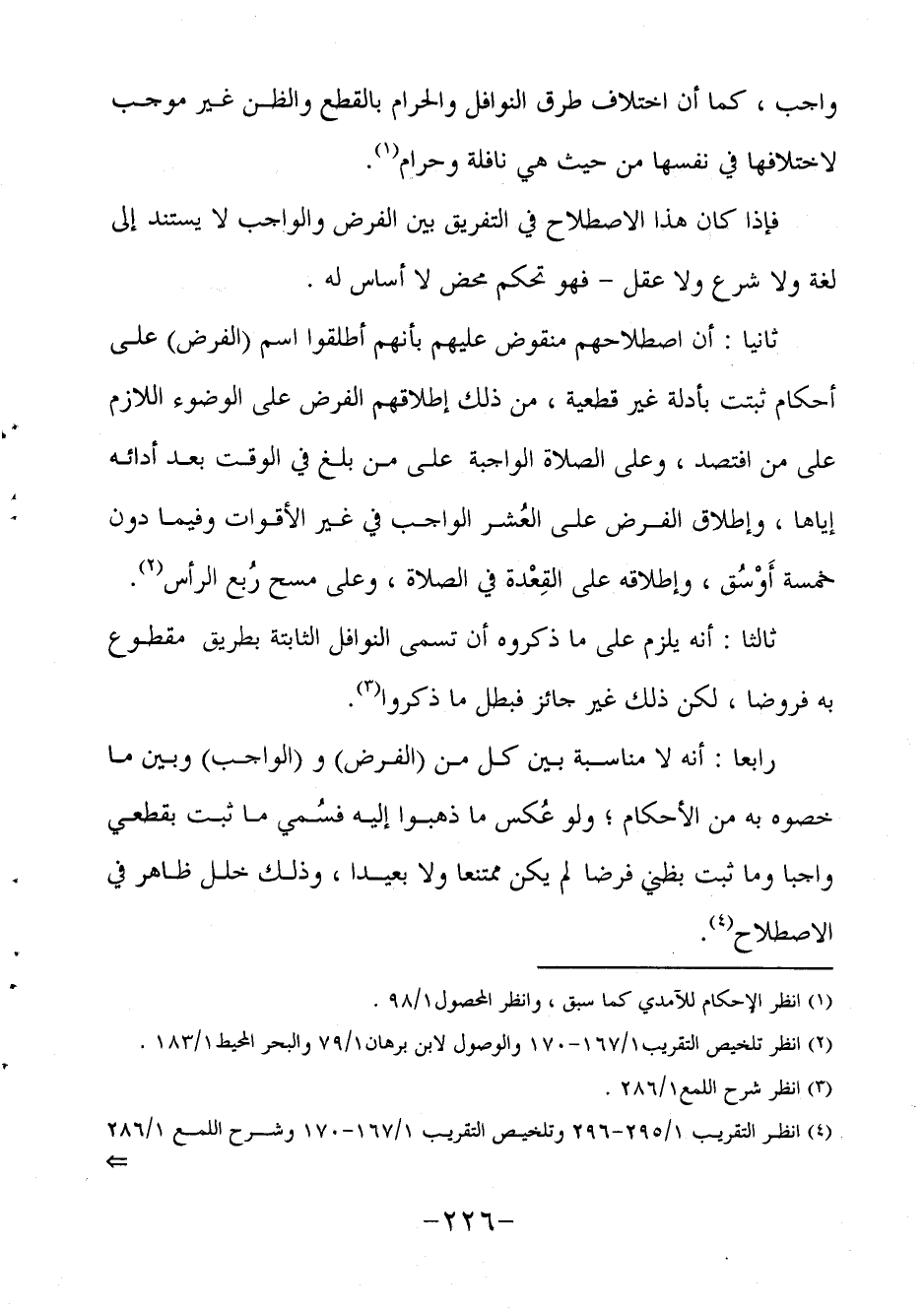 فإذا كان هذا الاصطلاح في التفريق بين الفرض والواجب لا يستند إلى اللغة ولا الشرع ولا العقل فهو تحكم محض لا أساس له.