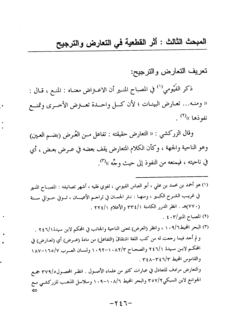 والتعارض مرادف للتعادل في عبارات كثير من علماء الأصول. انظر المحصول5/379 جمع الجوامع لابن السبكي2/357 والبحر المحيط 6/108-109 وسلاسل الذهب للزركشي مع تعليقات د. محمد المختار الشنقيطي عليه ص431 والتحصيل للأرموي 2/253، وانظر ما عرف به الفتوحي لكل منهما في شرح الكوكب المنير4/605-606.