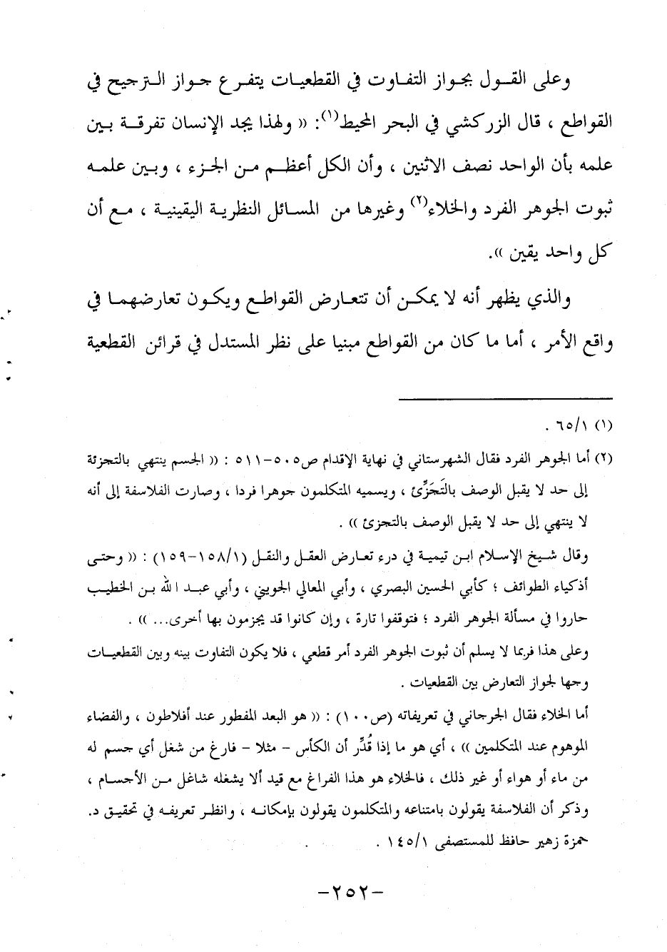 وقال شيخ الإسلام ابن تيمية في درء تعارض العقل والنقل (1/158-159) : "وحتى أذكياء الطوائف كأبي الحسين البصري وأبي المعالي الجويني وأبي عبد الله بن الخطيب حاروا في مسألة الجوهر الفرد فتوقفوا تارة، وإن كانوا قد يجزمون بها أخرى ... ".