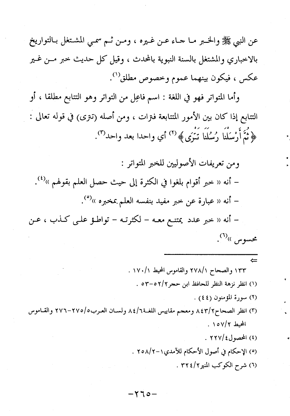 - أنه "خبر عدد يمتنع معه لكثرته تواطؤ على كذب عن محسوس"6.