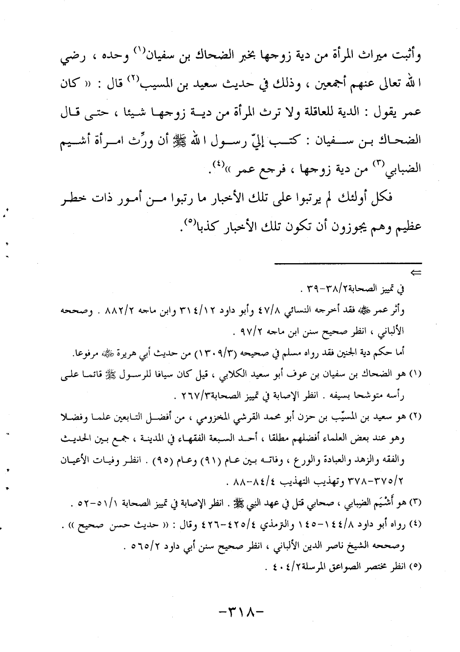 وأثبت ميراث المرأة من دية زوجها بخبر الضحاك بن سفيان1 وحده رضي الله تعالى عنهم أجمعين، وذلك في حديث سعيد بن المسيب2 قال: "كان عمر يقول: الدية للعاقلة ولا ترث المرأة من دية زوجها شيئا، حتى قال الضحاك بن سفيان: كتب إليّ رسول الله صلى الله عليه وسلم أن ورِّث امرأة أشيم الضبابي3 من دية زوجها، فرجع عمر"4.
