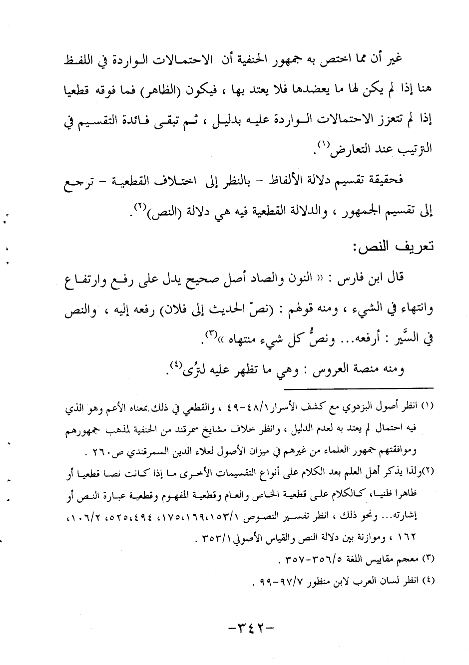 فحقيقة تقسيم دلالة الألفاظ - بالنظر إلى اختلاف القطعية - ترجع إلى تقسيم الجمهور، والدلالة القطعية فيه هي دلالة (النص) 2.