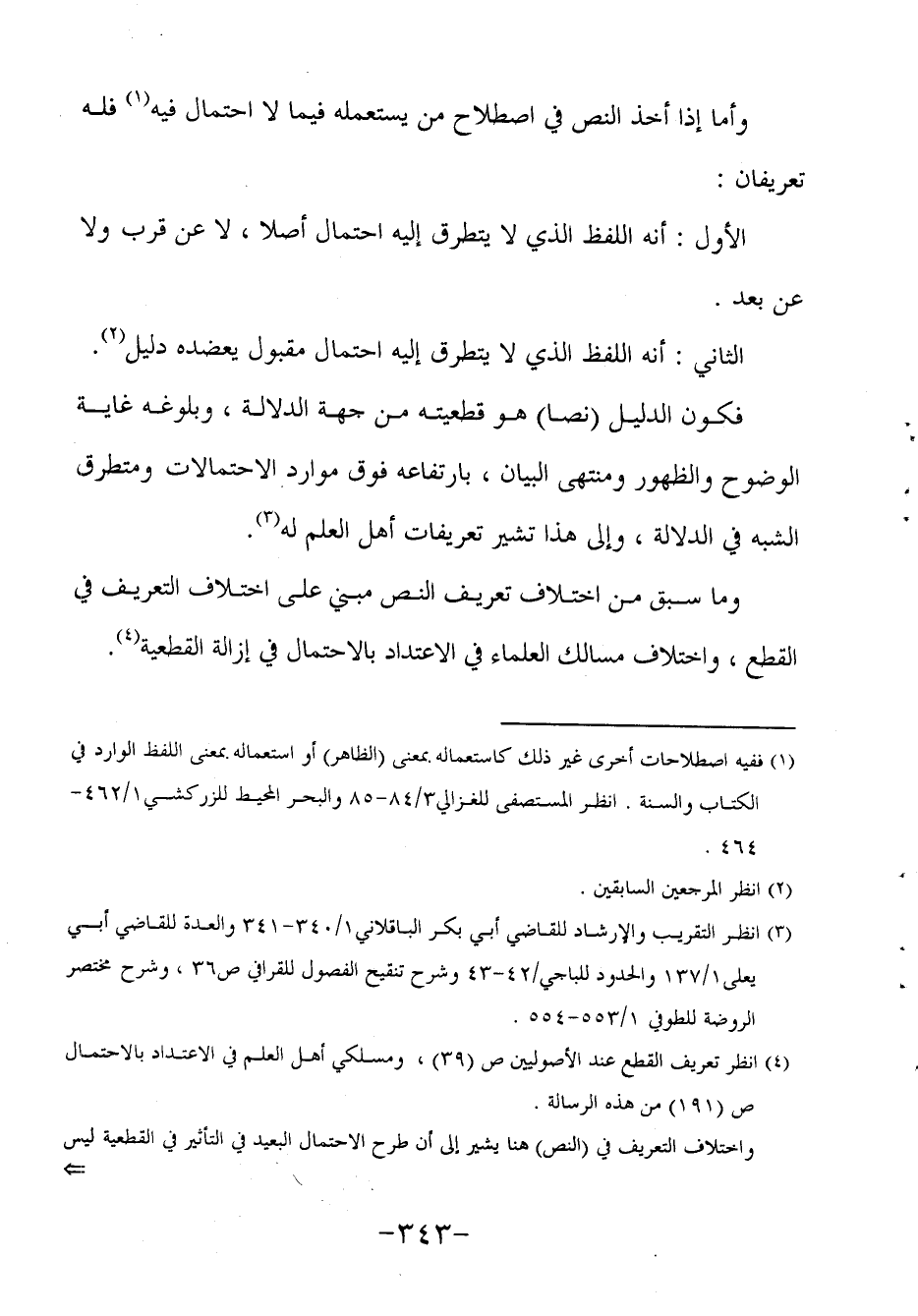 3 انظر التقريب والإرشاد للقاضي أبي بكر الباقلاني1/340-341 والعدة للقاضي أبي يعلى1/137 والحدود للباجي/42-43 وشرح تنقيح الفصول للقرافي ص36، وشرح مختصر الروضة للطوفي 1/553-554.